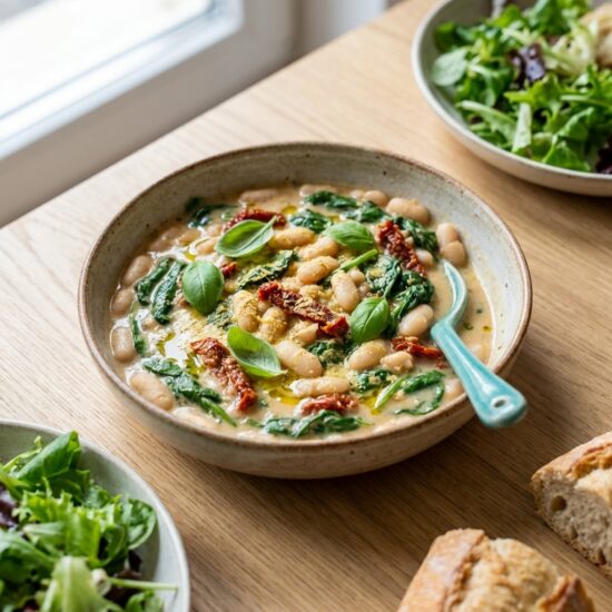 Ez a krémes egytálétel tökéletes választás egy gyors, húsmentes hétköznapi vacsorához. A fehérjében gazdag fehérbabot pikáns, napon szárított paradicsommal, fűszeres fokhagymával és édes mogyoróhagymával kombináljuk….