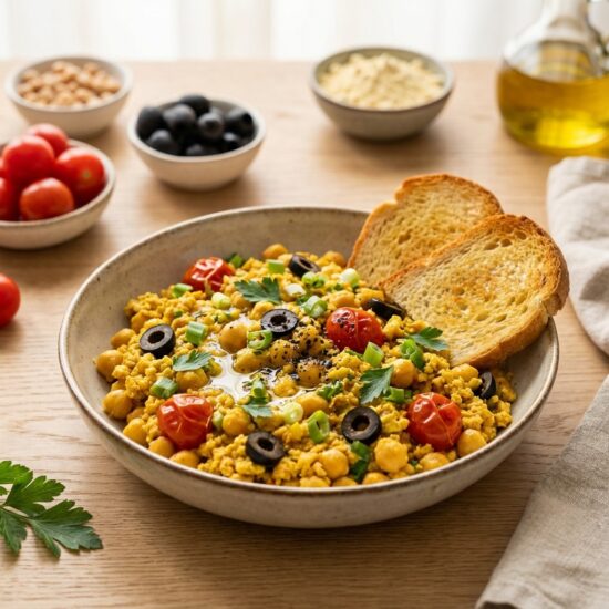 Ez mediterrán tojásmentes rántotta könnyű, mégis fehérjedús reggeli. A csicseriliszt teljes értékű növényi fehérjét ad, a paradicsom és olívabogyó mediterrán antioxidánsokban gazdag, az olívaolaj gyulladáscsökkentő…